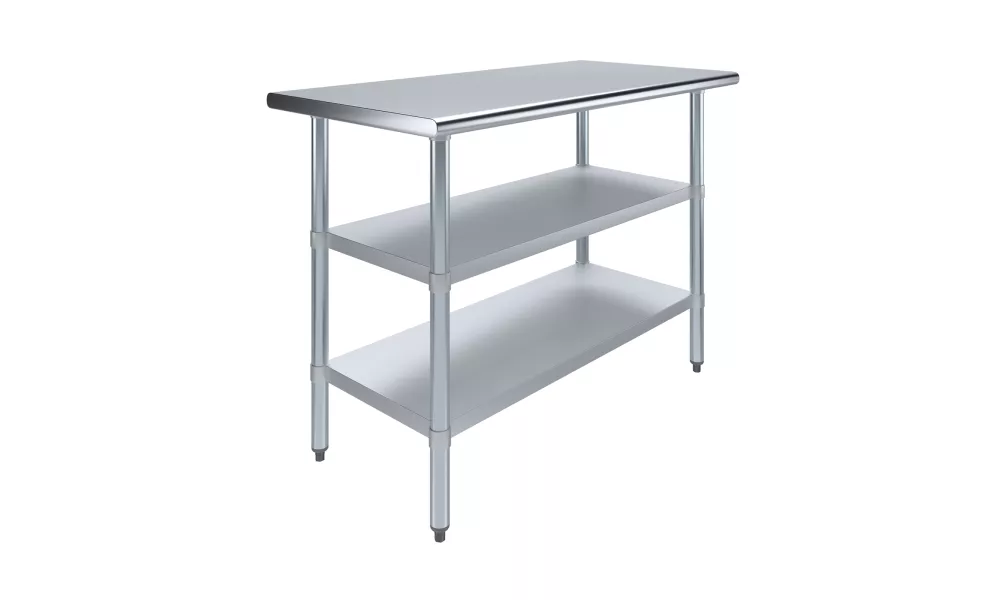 AmGood 24 in. Deep x 48 in. Long x 35 in. High Stainless Steel Table With Two Undershelves